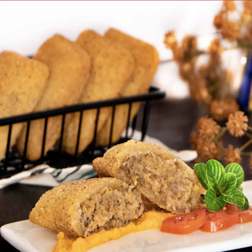 Ingredientes: água, carne de vaca (50%), farinha de trigo, cebola, ovo pasteurizado, pão ralado, chouriço, óleo de girassol, banha de porco, margarina, leite em pó, alho, sal, caldo de carne, caldo de galinha, pimenta e noz-moscada, tempero à base de especiarias. Alergéneos: Contém Glúten, Soja, Ovo e Leite. Características Nutricionais: Valor energético: 765KJ/181Kcal Lipidos: 27,6g dos quais saturados: 1,19g Hidratos de Carbono: 27,6g dos quais açucares 5,9gr. Proteínas: 9,5g Sal: 1,29g.
