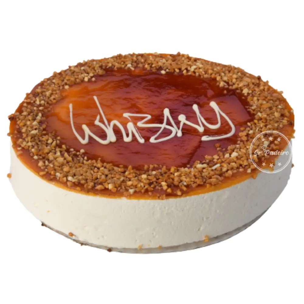 Base pão de ló simples, nadas e whisky com cobertura de caramelo. Contém Glúten. Imagem não vinculativa.